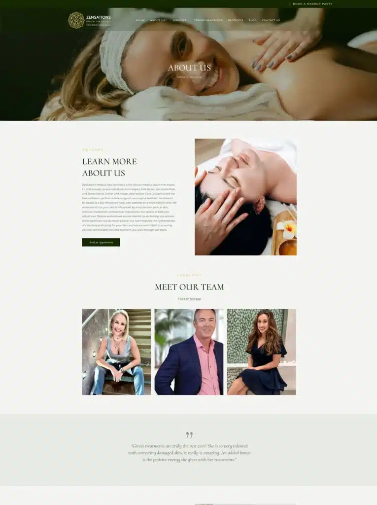 Zensations Spa operates in a competitive med-spa market in Fort Myers. This quarter, the spa saw a 100% year-over-year growth in organic traffic, with engagement time increasing to 110 seconds per session, showing strong visitor interest.